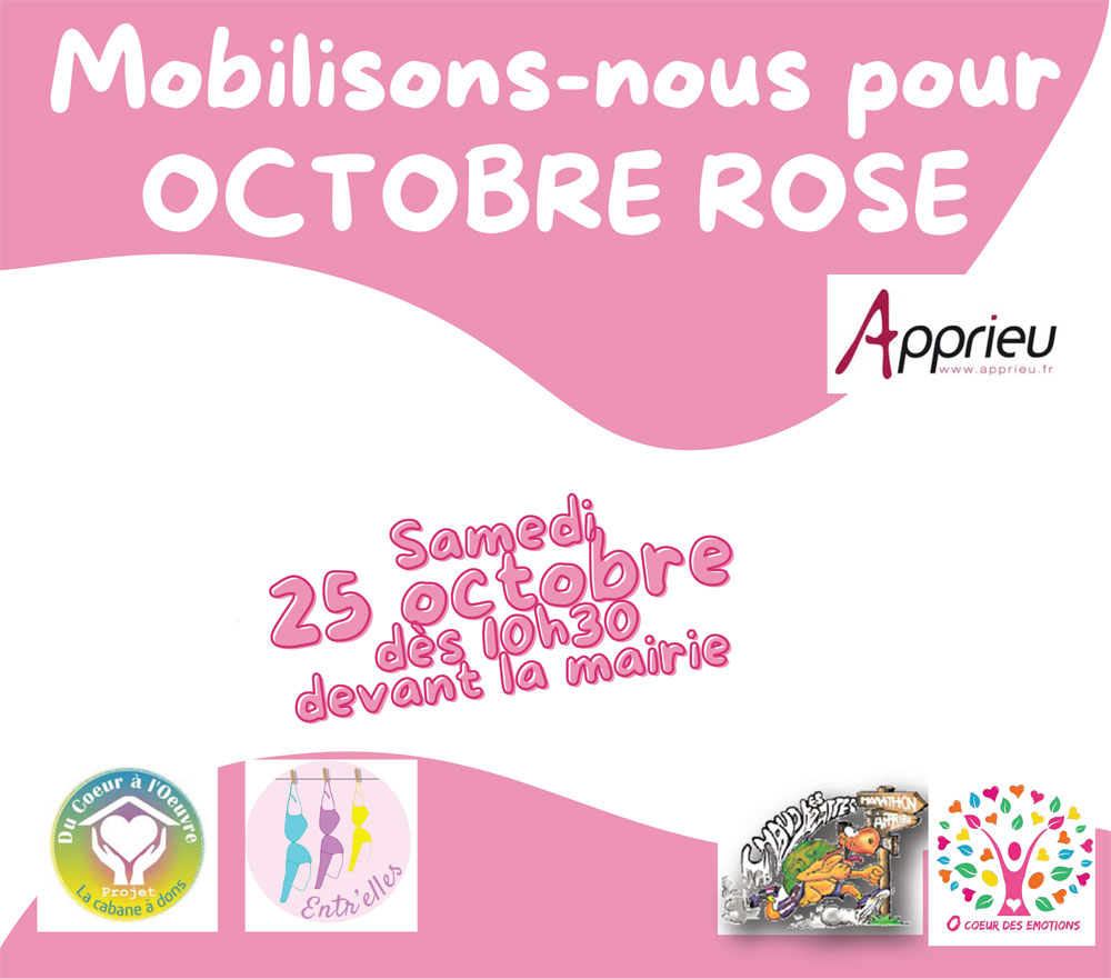 La commune d'Apprieu organise une mobilisation en faveur d'Octobre Rose le samedi 25 octobre à partir de 10h30 devant la mairie.