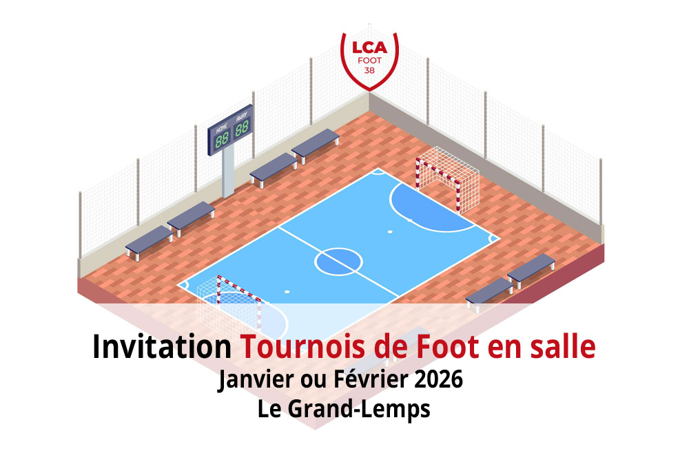 Le LCA Foot 38 vous convie à ses tournois de foot en salle toutes catégories (de U6 à U17) en janvier et février 2026 à la Grange (Grand-Lemps).