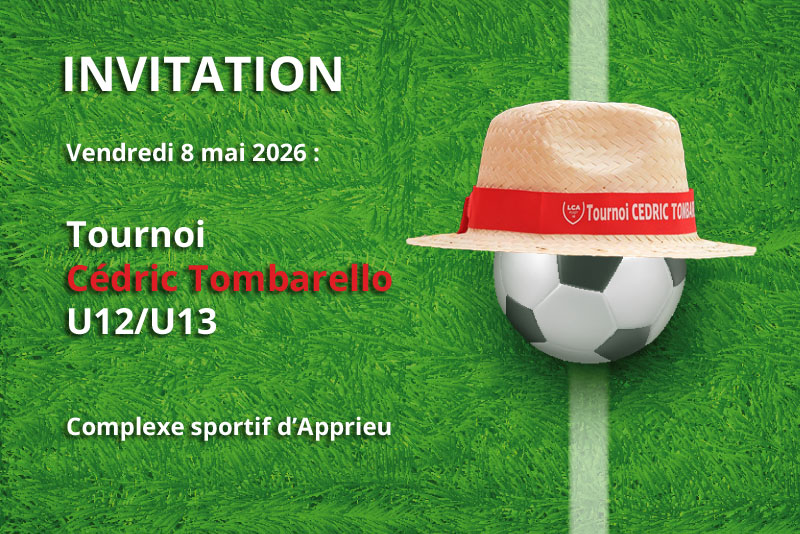 En souvenir de notre ami Cédric, le LCA Foot 38 et la famille Tombarello invitent les clubs à participer au tournoi U12/U13 qui se déroulera le vendredi 8 mai 2026 à partir de 9h au stade d'Apprieu.
