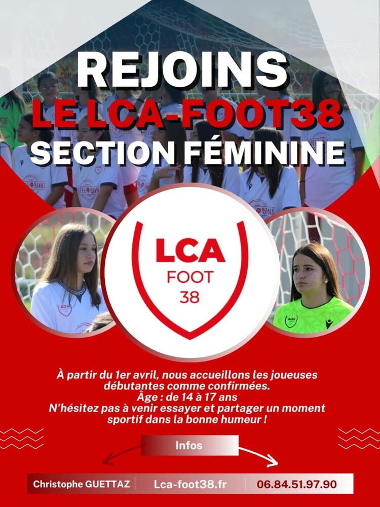 Le LCA Foot 38 ouvre ses portes à toutes les jeunes joueuses souhaitant découvrir ou poursuivre leur passion du football!